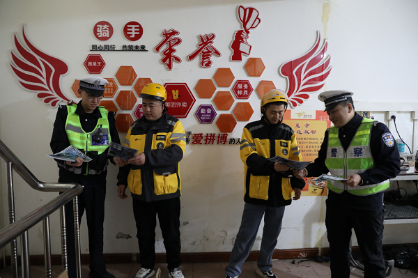 临江大队民辅警针对外卖骑手交通工具主要以摩托车、电动车为主的从业特点,以“一盔一带”安全守护为主题,通过面对面宣讲,发放宣传资料单的方式向外卖骑手重点讲解了因酒驾醉驾、超速、逆行、闯红灯、不戴安全头盔、行驶中拨打接听手持电话、不礼让行人、不按规定车道行驶等交通违法行为导致交通事故发生的原因和危害,要求外卖骑手做到无牌不上路、无证不驾驶、不超速抢行、不闯红灯,驾驶摩托车、电动车规范佩戴安全头盔、文明出行、守法出行,保障自身和他人的生命财产安全。