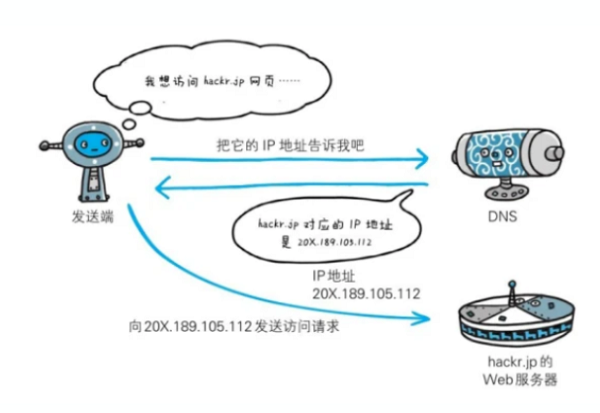 IP地址和域名是一一对应的,这份域名地址的信息存放在一个叫域名服务器(DNS,Domain name server)的主机内,使用者只需了解易记的域名地址,通过域名服务器进行转换就能找到对应的IP地址编号的电脑。