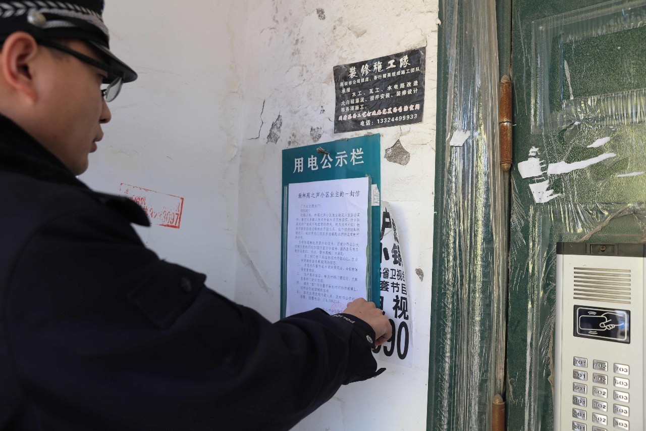 林苑之声小区属于在建小区,小区内虽有部分住户已经入户,但是整体建设尚未完成,防盗设施不完善,近期发生了数起入室盗窃案件。民警们针对小区实际状况,印制了“致林苑之声小区业主的一封信”,将安全防范知识印制在上面,在各个楼宇门前张贴,并向过往群众发放安全防范知识手册,现场为群众讲解。