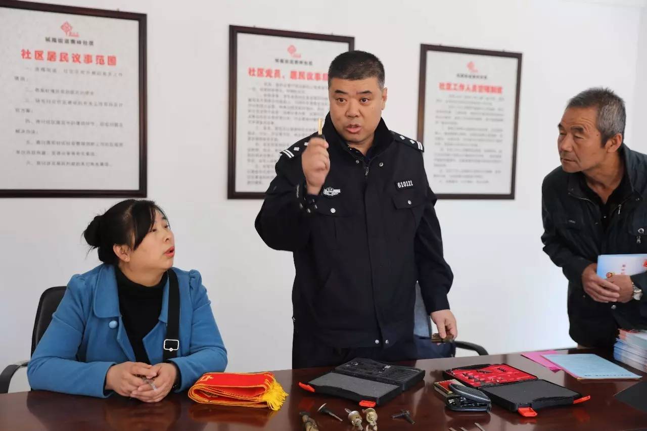 在社区活动室内,民警将格式锁具带到现场,结合实际案例,向群众讲解不同锁具的防盗性能以及如何加强自身的防范意识。