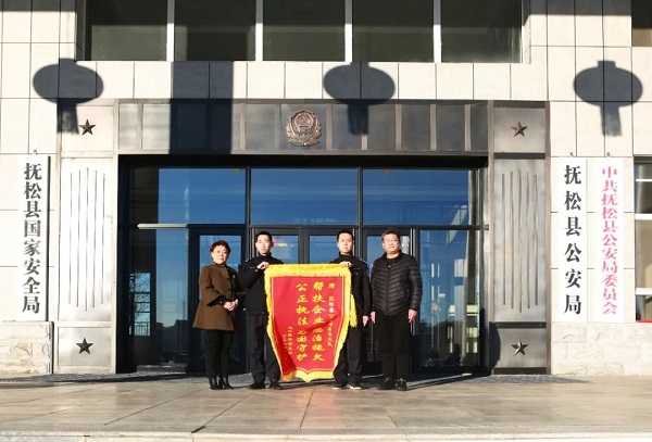 1月10日,在中国人民警察节到来之际,中国建设银行露水河支行工作人员来到抚松县公安局,将一面锦旗赠送至经侦大队民警手中,对民警及时为企业挽回损失表示衷心的感谢,并在第三个中国人民警察节这一天向全体民警致以最诚挚的祝福。