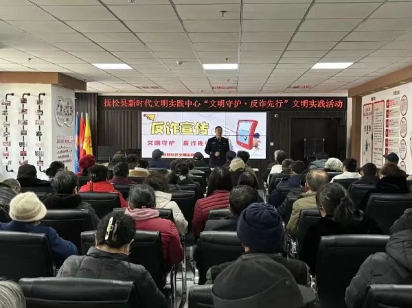 为切实增强老年群体的反诈意识和识骗防诈能力,维护老年人财产安全,结合“警地融合”“警民融合”工作,近日,抚松县公安局与抚松县新时代文明实践中心联合开展“文明守护·反诈先行”文明实践活动,民警现场为老年人普及电诈防范知识,传授防范技巧。