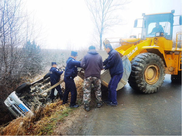 到达现场后,民警看到面包车翻倒在排水沟中,在确认车内无人员伤亡后,民警一边安抚被困人员,一边在事故现场周围设立安全警示标志,防止发生二次事故,经过一个多小时的紧急救援,被困车辆成功脱困,被救驾驶员紧紧握住民警的手连连道谢。