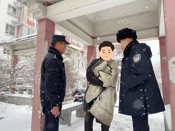 11月28日12时许,江北公安分局接到辖区群众报警,称发现一名衣着单薄的流浪人员在雪中流浪。接到报警后,民警驱车迅速赶往现场,发现一名男子卧在雪中瑟瑟发抖,衣着单薄、思路不清,无法准确表述自己的身份信息。此时正值降雪,气温骤降,长期露宿街头存在较大安全隐患。民警将其带回分局值班室,并为其购买食物充饥。经核查,发现该男子系靖宇县籍人员,为了让该男子能及时得到进一步救治,民警与白山市救助站取得了联系,将其送往救助站进行妥善安置。