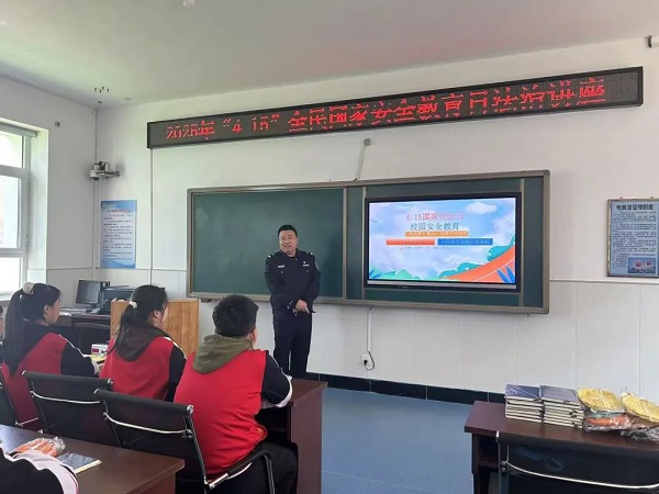 在三道沟镇明德小学,江北公安分局民警为同学介绍了与国家安全息息相关的《中华人民共和国反分裂国家法》《中华人民共和国反恐怖主义法》《中华人民共和国保守国家秘密法》《中华人民共和国网络安全法》的相关知识和边境居民应注意的国家安全事项。白山市网信办的同志为学生们讲解了青少年在参与网络活动时,不要随意点击弹窗广告、不明链接网址,提高网络安全意识。宣讲结束后,普法工作者们为学生们发放了普法宣传册和纪念品。