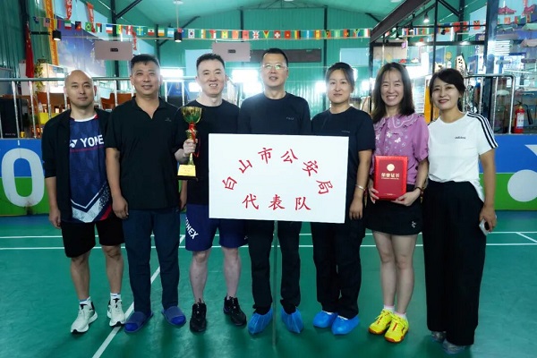 为纪念中国人民抗日战争暨世界反法西斯战争胜利80周年,庆祝中华人民共和国成立76周年、中华全国总工会成立100周年,9月15日上午,由市总工会、市直机关工委、市文广旅局共同举办的“工运百年?国韵风华”全市职工羽毛球比赛开赛。白山市公安局代表队充分发挥奋勇拼搏、力争上游的体育精神,最终荣获团体第一名。