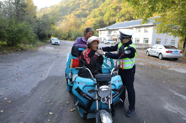 抚松交警大队民辅警在路口、社区、农村赶集日等人员密集区域设立宣传点。针对骑电动车出行的群众,民警重点强调:“别觉得冬天戴头盔笨重,现在的安全头盔轻便保暖,不仅能挡风,更能在滑倒、碰撞时减少伤害。”现场还发放了因未戴头盔导致头部受伤的事故案例图册,触目惊心的画面让群众深刻体会到“小头盔”的“大作用”。