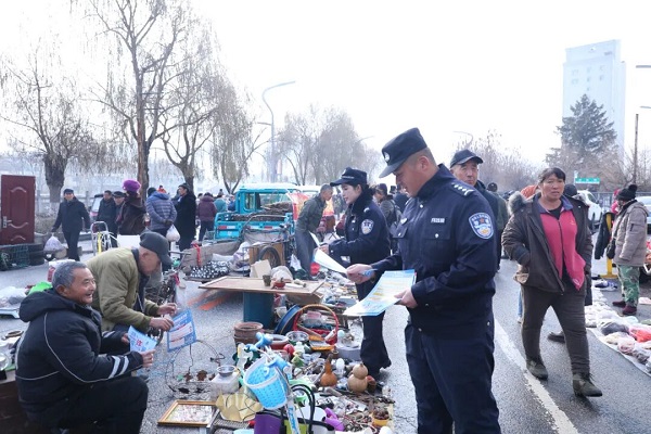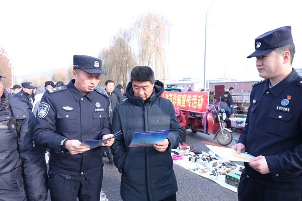 活动当天,集市上人头攒动、热闹非凡,宣传小队提前谋划,在集市入口、中心摊位等关键位置悬挂“防范电信诈骗,守护财产安全”“不听不信不转账,反诈防诈记心上”等醒目横幅,摆放反诈宣传展板,吸引了大量群众驻足观看。