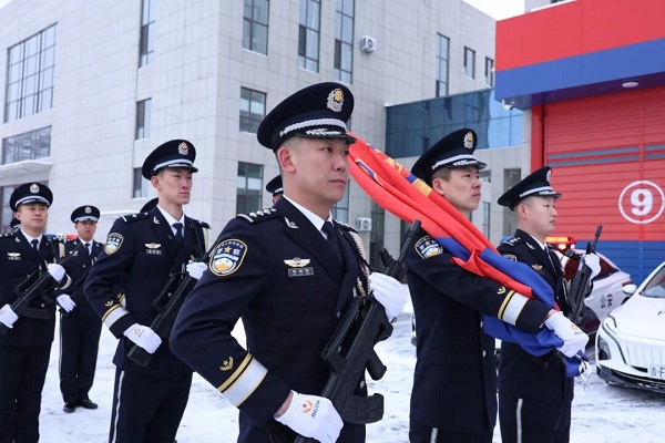 1月10日,在第六个中国人民警察节到来之际,江源区公安局隆重举行升警旗仪式。全体民警身着警礼服、精神抖擞,以最庄严的方式致敬警旗、践行使命、续写荣光。