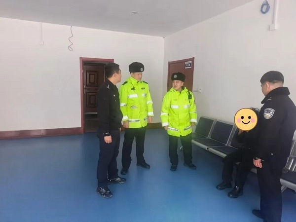 此时,正在附近执行巡逻任务的白山市公安局交通管理支队浑江区大队板石中队民警辅警发现了这一异常情况,立即下车上前,一边引导车流避让,一边将老人搀扶至安全区域。沟通过程中,两人察觉老人言语不清、精神状态不佳,便决定先将老人送往附近的白山市公安局浑江区分局七道江派出所进一步救助。