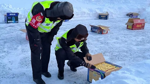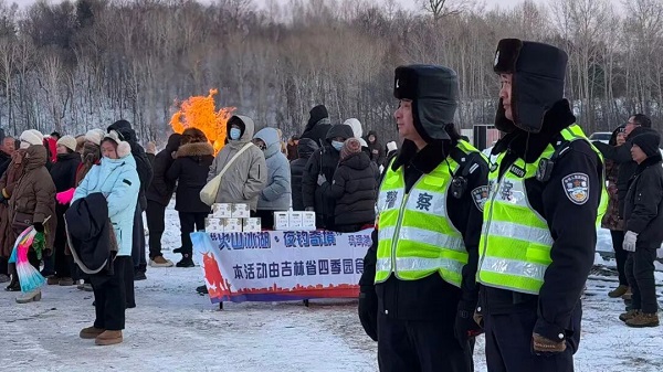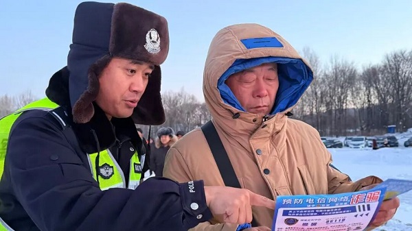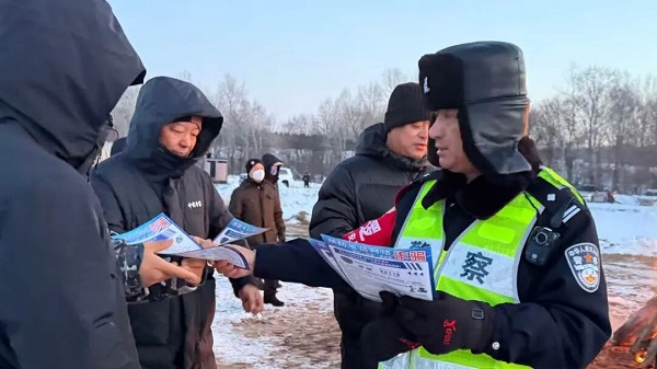 “大爷,冰面湿滑,您慢点走,这边有防滑垫”“师傅,钓鱼时记得看好随身物品,谨防被盗!”在安保工作中,民警通过发放宣传单、“面对面”宣讲的方式,结合真实案例向游客和钓友讲解防范电信网络诈骗知识常识,累计发放宣传资料300余份,有效提升了游客和钓友防范电信网络诈骗的意识和能力。同时,民警主动为游客和钓友提供热水、协助他们搬运渔具、指引活动路线,及时帮助有需要的群众解决各类困难和诉求。有的钓友因长时间垂钓没有戴手套导致手部血液循环不畅,容易引起冻伤,民警拿出手套和保暖贴为其取暖;有游客不慎遗失手机,民警通过调取监控和实地走访调查相结合的方式,快速为其找回。一件件暖心实事、一句句贴心叮嘱,让零下30摄氏度的冬日充满暖意,不少游客和钓友纷纷为执勤民警点赞,直言“有你们在,我们玩得既开心又安心”。