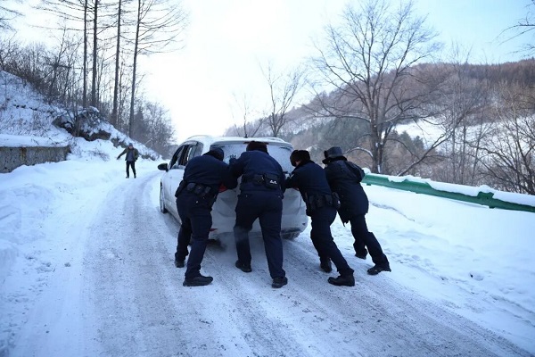 清理积雪、固定拖车绳、缓慢牵引……民警们配合默契,顶着刺骨寒风紧张作业,短短二十分钟,就将被困车辆成功牵引至安全路面。随后,民警细致检查车辆状况,叮嘱驾驶人雪天行车技巧,并告知其临时值守点和应急求助电话,方便后续遇到困难随时求助。“多亏了你们,不然我们的新春旅途就要受影响了,太贴心了!”驾驶人连连致谢。