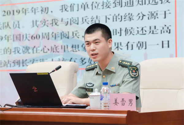 65370部队61分队政治指导员姜雪男同志以第一视角带领全体参训人员回顾了让人热血沸腾的大阅兵,阐释了大阅兵所彰显的革命军人新风貌、军队转型新气象和国防、军队建设新成就,让大家心潮澎湃、备受鼓舞,增强了学习受阅官兵勇敢顽强、不怕牺牲、不怕疲劳、连续战斗的优良作风。