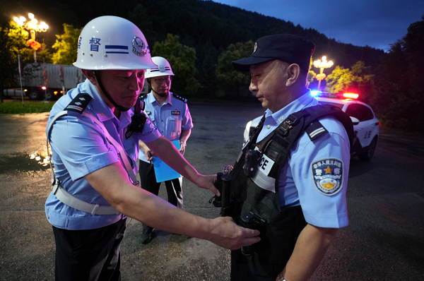 珲春市公安局驻企警务站开展日常安全巡护勤务。路松 摄