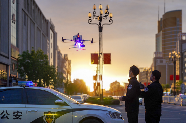 四平市公安局警航支队利用无人机开展巡查工作。苏星晨 摄
