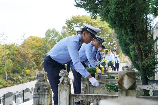 在第十二个烈士纪念日到来之际,为深切缅怀为公安事业英勇献身的革命烈士,弘扬英烈精神,传承红色基因,进一步凝聚警心、激励斗志,筑牢全警忠诚警魂,9月30日上午,白山市公安局机关党委组织新发展党员代表和共青团员代表,前往宝山公墓公安烈士墓地,庄严举行了以“缅怀英烈功绩 筑牢忠诚警魂”为主题的祭扫活动,教育引导广大民辅警学习公安英烈和革命烈士对党忠诚、信念坚定的政治品格,不怕牺牲、舍生忘死的英雄气概,激发投身新时代公安工作的强大精神动力。