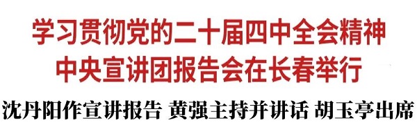 按照党中央统一部署,11月6日,学习贯彻党的二十届四中全会精神中央宣讲团报告会暨省委理论学习中心组集体(扩大)学习会在长春举行。中央宣讲团成员,国务院研究室党组书记、主任沈丹阳作宣讲报告。省委书记黄强主持报告会并讲话。省委副书记、省长胡玉亭出席。