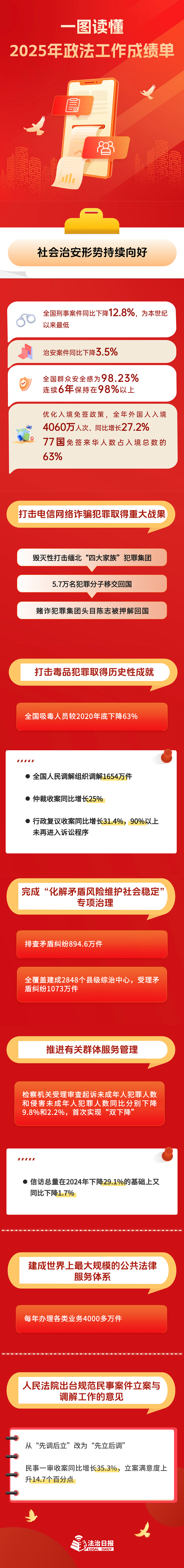 2025年政法工作, 取得哪些亮眼的成绩? 2026年政法工作的 总体要求和重点任务, 如何部署? 一起来看 ↓↓↓